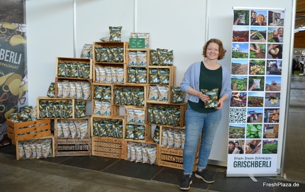 Eva Zwingel has already presented the 'Grischberli' at several trade fairs, such as expoSE 2022 (pictured), Fruchtwelt Bodensee and Consumenta in Nuremberg. One offers the respective buyer not only the chips, but also the associated advertising materials, such as brochures and product displays made from old wooden crates.