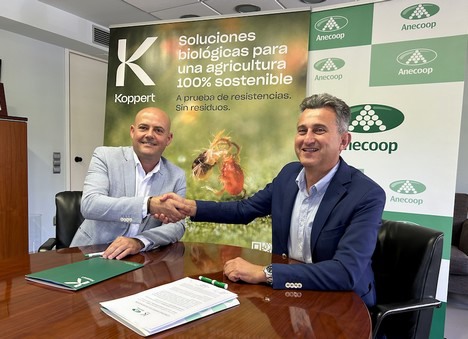 The collaboration agreement between Anecoop and Koppert will also serve to promote training and knowledge transfer in biological pest and disease control. Both Anecoop's technical field advisors and the cooperative group's producer partners will receive specific training that will be supervised by Koppert. "We know that biological pest control in agriculture has nothing to do with the conventional methodology of chemical treatments, and that optimal results are achieved with proper training and advice," said the commercial director of Koppert, Juan Miguel Rodriguez, during the signing of the bilateral agreement.
