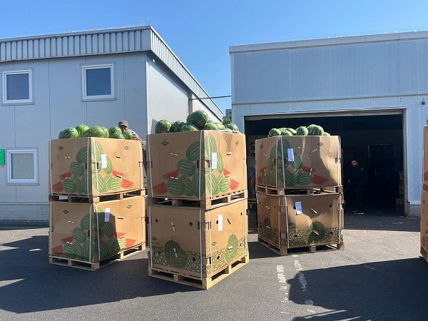 The price range of watermelons is currently 0.70 per 0.75 EUR/kg, he said. For all origins, he is seeing very good demand. Watermelons are sold by the company throughout Germany, and they are also exported to France, Austria as well as Switzerland. "Our customer base includes discounters as well as supermarkets."