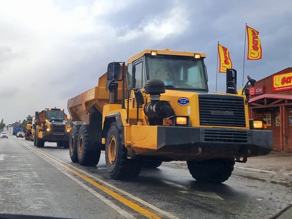 Earthmoving equipment on the way to repair Citrusdal's road access