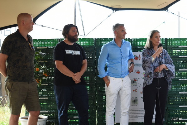 Lennart van den Heuvel (Olympic Fruit), Dineke van Meeuwen (Fruitpacking District) and Thijs van den Heuvel (Olympic Fruit).
