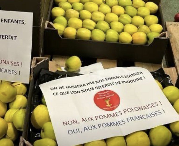 The French Apple Pear Association reacts after discovering Polish apples at a wholesaler