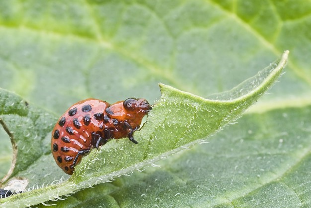 If not eradicated, Colorado potato beetles are a significant threat to potato crops. The adult beetles and larvae feed on the foliage of potato and other plants in the nightshade family and can completely strip them of their leaves if they are left uncontrolled. However, they are not a threat to human or animal health.