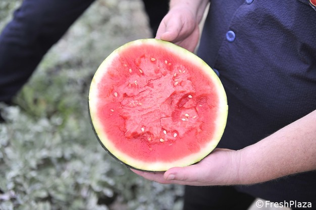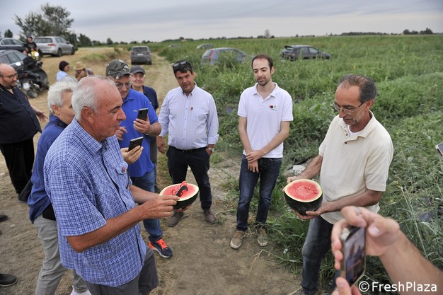 Cristiano Lorenzini and Stefano Rossi, respectively co-owner and director of Lorenzini Naturamica, played host to circa 20 journalists from the sector and beyond: "We focus on the premium segment. Our watermelons or melons can only carry the brand name if they achieve above-average quality. We laser-engrave the brand and a traceability code on the skin of each fruit."