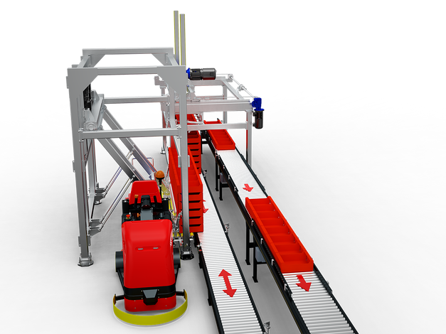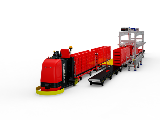 In results in a minimization of the physical work associated with moving boxes or cartons by employees by using electric and autonomous AGVs, and enables growers to pack the goods using machines into ready-made pallets and transport the fruit and vegetables to their destination.