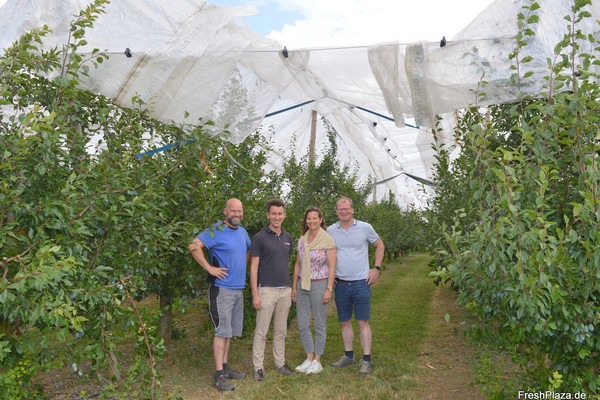 (from left) Master fruit grower Martin Krupp, Tobias Linnemannstöns (Head of Supply Chain Management), Béatrice and Markus Schneider.