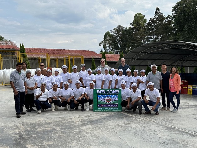 The Rainforest Organic packing house team welcoming I Love Produce.