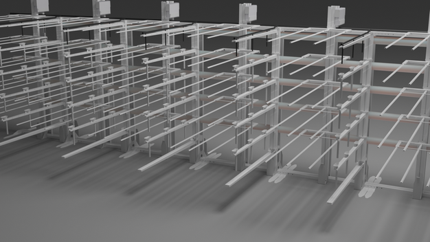 Let's say that with lettuce recipes, growers would start out in the germination chamber, where the seeds are spread out over 15 levels per trolley. After germination, they will move them to propagation, where eventually the seedlings are spaced out in three different trolleys, which brings a total of five trays per trolley.