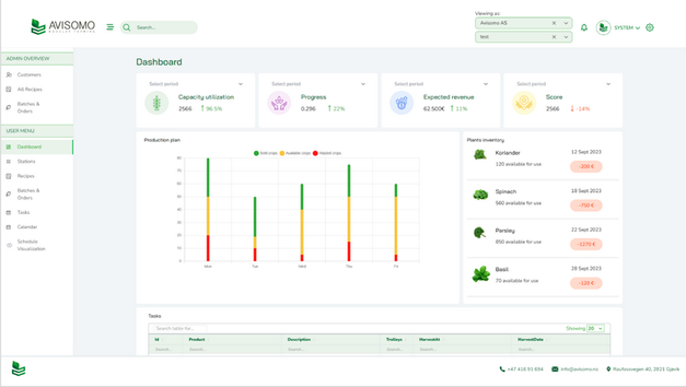 All crop recipes are visually implemented into the Avisomo Farming Software, the heart, and soul of the plant growth system. Delivered via IOTs, it will tell farm workers exactly what to do and when or where to do it - from seed to harvest. It also notifies employees when a crop is ready for harvest and what needs to be done in order to get it ready. And depending on the farmers' desired level of automation, any kind of farm task can be handled manually or seamlessly automated.