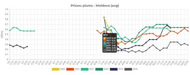 As it is clear from the price trends, despite a rather modest plum harvest, prices thus far remain relatively low. Lower prices have only been observed in 2018 when the harvest was record high.
