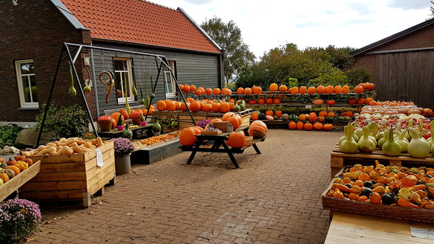 Groesbeek is not a typical pumpkin region. "There are mostly cows. In that sense, I'm a strange duck, " Chris laughs, who 20 years ago decided to start growing pumpkins full time. The grower does all his own sales towards supermarkets, wholesalers, exporters, processors, and in his pumpkin shop.