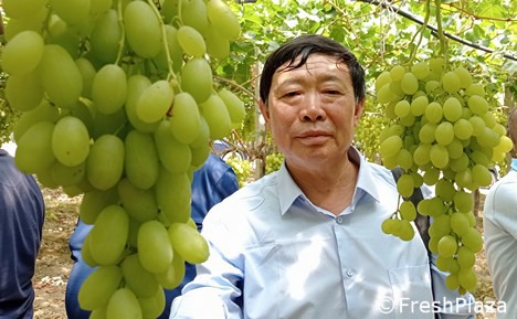 Yunjun Chang observes a bunch of a pre-commercial grape variety