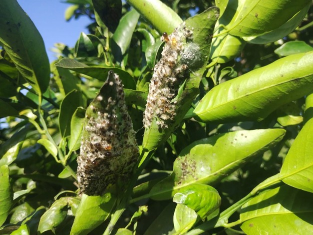 "It produces high amounts of honeydew that covers leaves and the fruit. As with other whitefly attacks, sooty mold can settle on the honeydew and affect the plant's respiration and photosynthesis. It also causes defoliation that weakens the tree and can seriously affect the production due to its negative impact on the fruit setting."