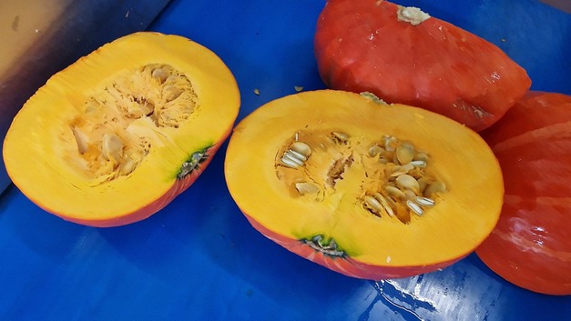 "Processors struggle to process red pumpkins well; their seeds take up quite a lot of room. Fortunately, Hokkaido squash peel is edible and contains two unique carotenoid pigments, lutein and zeaxanthin. It would be a shame not to use these unique properties of the peel."
