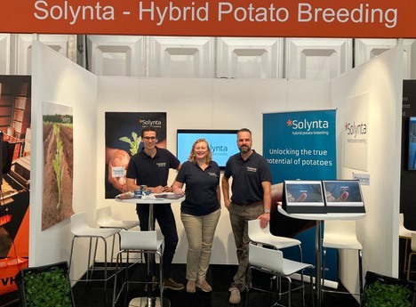 Solynta's team at Potato Europe 2023. F.l.t.r: Xarain van Os, Caroline Elias-Mackay, and Jos Aben.