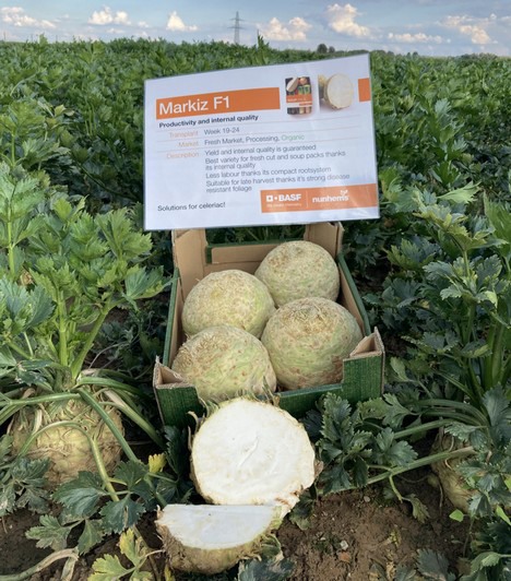 During a tour of the celeriac demo field, Ann Demeulenaere put several varieties side by side. According to the product specialist, the market is "still growing a bit every year", partly thanks to popularity in meal kits.