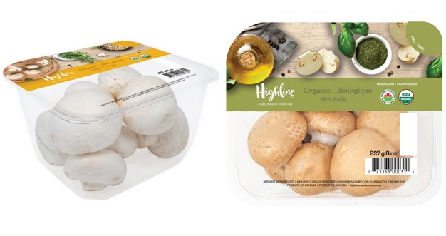 Clear tills of mushrooms will be packed on Highline farms across Canada this week under the company’s brand and will be on retail shelves in the coming days. Consumers will have full visibility of the mushrooms in the pack and will be able to see the quality of the product.