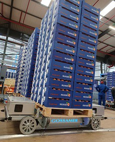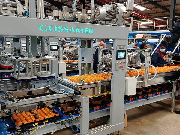 All of the automation employed in the packhouse was built by Cape Town-based Gossamer: inline automatic packing machines, automatic accumulation areas, automatic palletizers with unmanned shuttle cars.