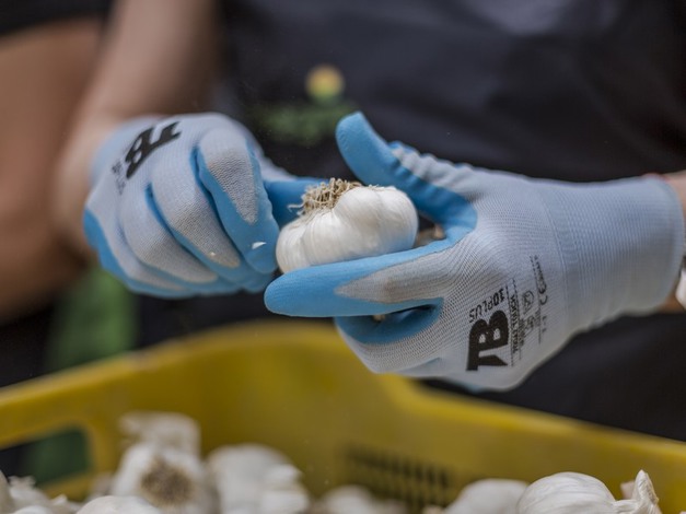 "Calibers have also been smaller than average, forcing us to change the standard format on the shelves. This year, the weight of a 45-50 mm purple garlic, which used to amount to 42 grams, has dropped to about 36 grams; a symptom of accelerated growth caused by unfavorable climatic conditions. Therefore, up to 6 heads of purple garlic are being used to reach the same weight of the traditional 4 head meshes."