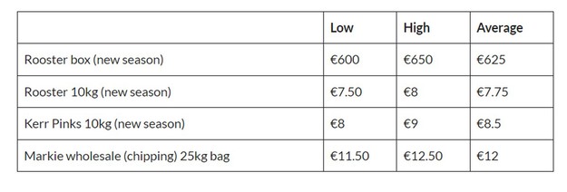Yields on the continent are reported to be good in both Belgium and in France where they are 10.2% higher than last year. Yields in Holland are “less than in Belgium” and quality issues including misshapes, Pink Rot and Blight are being seen. In Germany some stores have already been unloaded because of “breakdown”.
