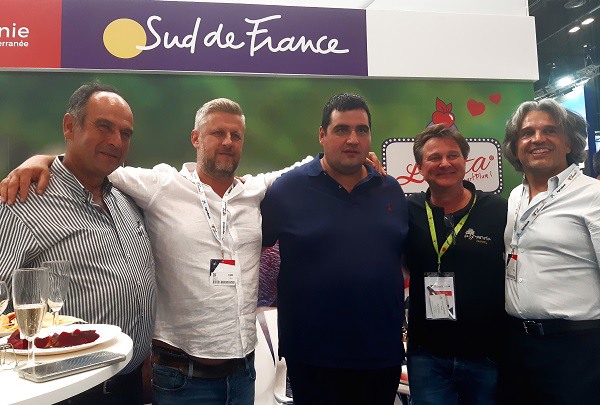 Emanuel Timóteo (father), Sébastien Rispe (Pépinières Rispe), Emanuel Timóteo (son), Benoit Escande (Pépinières Escande) and Sébastien Guy, sales manager of French Fruit Lovers