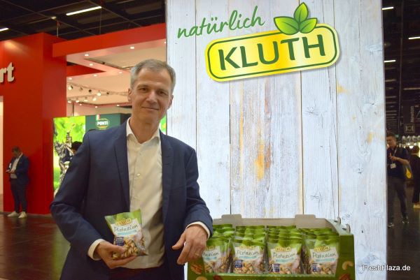 "Nuts and dried fruit are perceived by consumers as healthier alternatives to replace, for example, the bar of chocolate at the office or the bag of chips on the sofa," says Sven Schenkewitz, marketing manager at Herbert Kluth Ltd & Co. The company was founded in 1928 and focuses, among other things, on importing and processing of nuts and dried fruit. Sven Schenkewitz at Anuga 2023. This year, the company received the "Product of the Year 2023" award, for its pistachios.