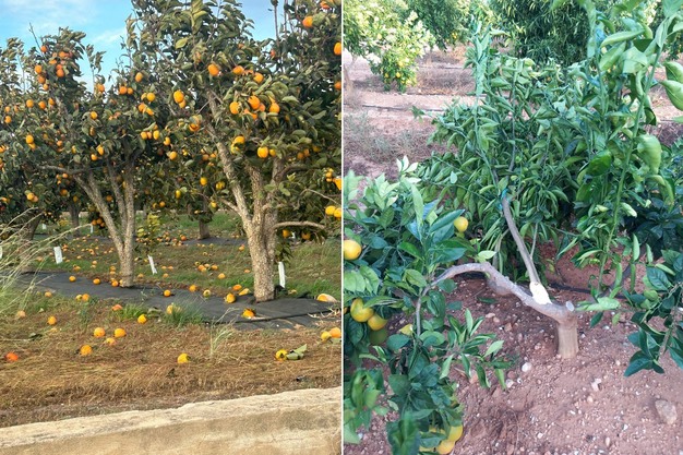 The most damaged crops are those that are currently in the middle of the harvesting season, like citrus fruits, kakis or avocados.