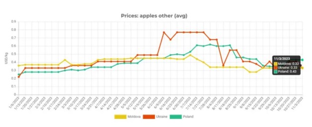 If the situation on the apple juice concentrate market continues to heat up, this could accelerate the increase in apple prices on the fresh market, especially after the onset of frosts in Ukraine and Poland. As a rule, this coincides with the end of the marketing of apples that are not subject to long-term storage, which reduces supply in the lower price segment of the apple market.