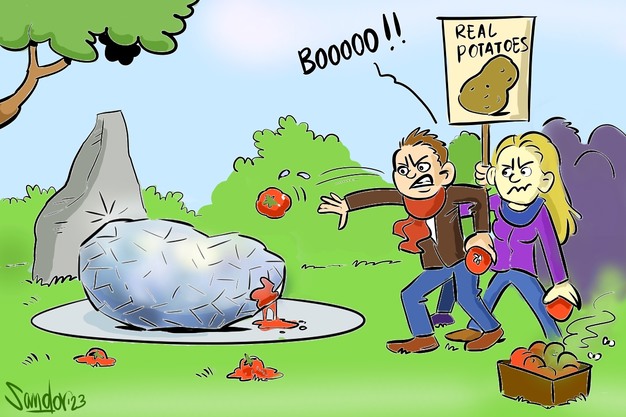 The Welsh Council is in a mess. They spent almost €7,000 on a piece of art to mark the start of the Wales Coastal Path walk. The statue depicts a characteristic boulder from the area, but the locals think it is a big waste of money and are angry. They renamed the statue 'baked potato'.