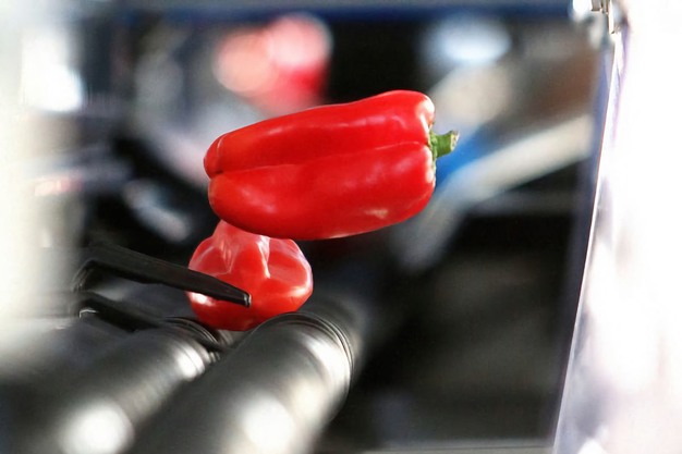 The speed of Sidewinder depends on the product as well as the configuration of the machine. “Some of our customers are packing bell peppers on a 10-lane set-up with 30 drops that are consistently seeing a throughput of 66,000 lbs/20,000 kg. per hour. However, for smaller machines like a 4-lane machine running on cucumbers, customers report they are running about 38,000 pieces per hour.” Depending on what type of product is running, what defects are being graded for, and how many drops are being used, speeds can go higher or slower.