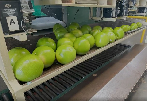 Sidewinder differentiates itself from other sorters in the market because of its multi-product capabilities. Below is a photo of pomelos being sorted. However, the company also has customers running other citrus fruit varieties (grapefruit, oranges, lemons, etc.), bell peppers, tomatoes, melons, onions, cucumbers, potatoes, hard squashes, as well as soft squashes. In addition, it handles oblong and irregularly shaped fruit. “The beauty of the Sidewinder is that it can be configured for a variety of products. It takes about 90 minutes of easy adjustments and testing to start running a different crop through the same sorter with the same high speed and high-quality results.”