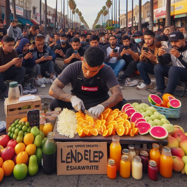 Starting their day at 5 a.m., Isabel purchases various fruits for their street vending business while Benítez prepares their children for school. After setting up their two vending carts loaded with fruit and ice, they head to their separate vending locations. Their live streams on TikTok, showcasing their skillful fruit slicing, draw thousands of viewers daily.