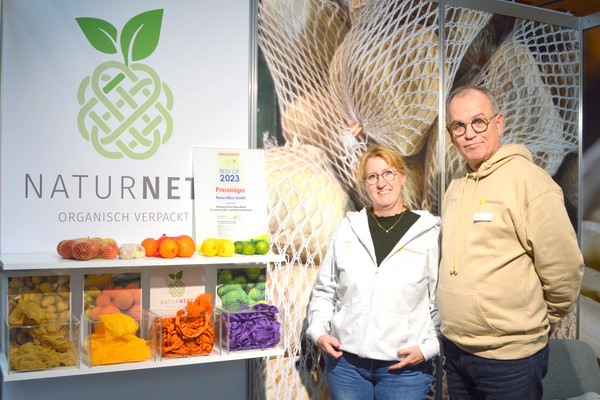 Sylvia Segeler and Dietmar Baumeister won the coveted Innovation Award at expoSE in Karlsruhe. The company's innovative cellulose nets can theoretically be supplied in any desired color.