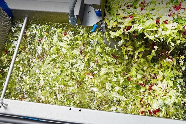 To prove the efficacy of the process in an industrial setting, tests using PTW to process baby leaf lettuce and other types of lettuce in the HEWA washing machine developed by KRONEN were carried out over several months at the facility of the fresh produce manufacturer Gartenfrisch Jung GmbH. These tests examined the disinfection efficiency in the wash water and on the treated products, resource savings compared to other disinfection methods and the optimization of the products’ suitability for storage and transport.