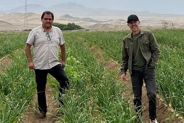 Matthew Gideon (right) and Jose Guevara in the fields in Huaura, Peru in October.
