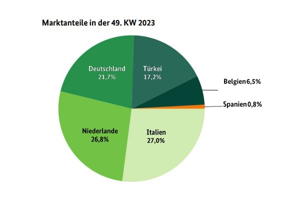 According to the BLE, prices often remained at the previous week's levels. Only Munich reported volume-related price increases for Italian fruit. Customers there also had to dig a little deeper into their pockets for local Alexander Lucas. Like Xenia and Conference, these generally only accounted for a supplementary share of the overall range. Belgian and Spanish goods did not achieve more than a complementary status.
