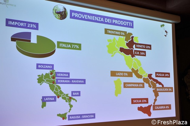 "The produce comes mainly from Emilia Romagna (16%), Puglia (14%) and the Veneto (13%) followed by the other regions."