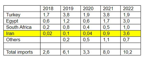 Meanwhile, Iran ramped up its orange exports to the Uzbek market starting from 2021. Before that year, Iran only supplied up to 130 tons of oranges per year to Uzbekistan, which made up no more than 2% of the total orange imports to this country. But in 2021, Iran sold 855 tons of oranges to this market – raising its market share to 11%, and in 2022 – 3.6 thousand tons, increasing its share in this market to 35%!