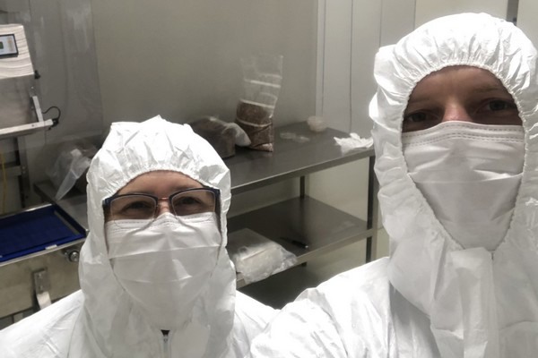 David Reiser (r) and his employee Claudia in the inoculation room.