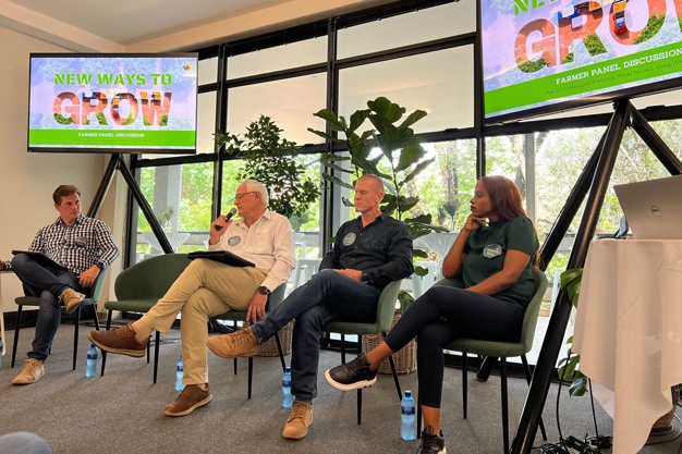 The farmers' panel at the AgriTech Day: Greg Whitaker, Piet Smit (Komati Group), Jan-Louis Pretorius (Groep91 Uitvoere) and Mbali Nwoko (Green Terrace)