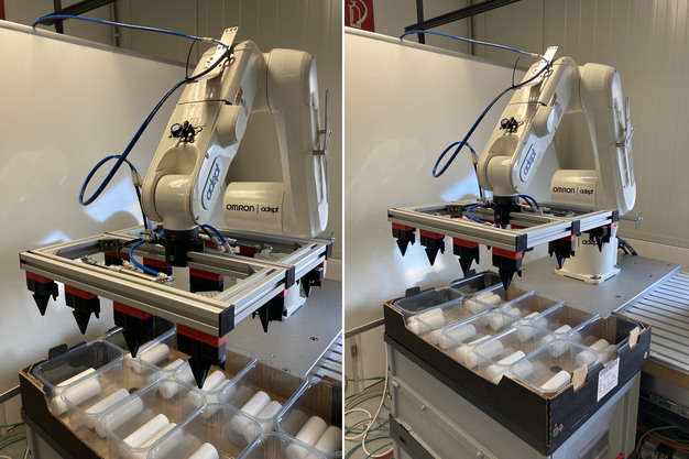 Three years ago, the Dutch company MDE Automation took its first steps into the fresh produce sector with a completely new line for optimizing chicory processing at Reijnpack. That made it clear to MDE Automation founder Edwin Denissen that there were more automation opportunities in that sector. The latest development is a gripper that can pick up plastic punnets of fruit and vegetables from boxes and place them at any desired location. It can also case-pack punnets coming off the packaging line.