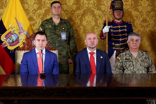 (Left) Ecuador's President Daniel Noboa Azin with military leaders. Photo: General Secretariat of Communication of the Presidency.