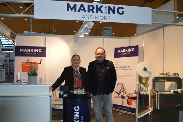 Bergheim-based company MARKING AND MORE looks back on a successful debut at expoSE 2023. They plan to exhibit again this year. Pictured: Michèle Pollnik and CEO Frank Rüttgers.