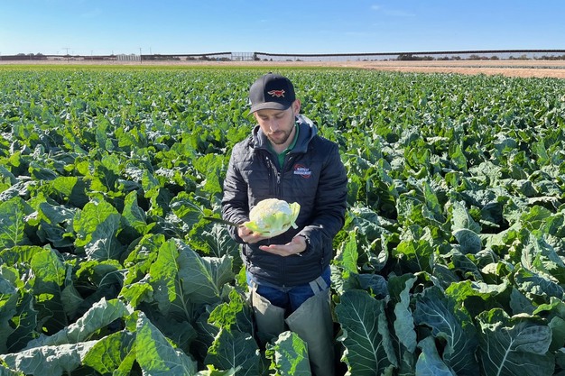 Raul Garnica of Braga Fresh shows off some product from the field.