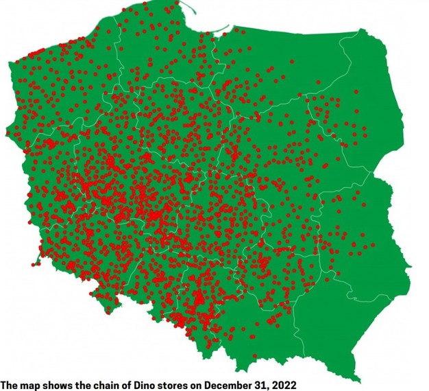 The network of Dino stores increased from 111 stores at the end of 2010 to 2,340 at the end of 2023 across Poland. Since 2020 Dino has opened a new store in Poland every day: in the last three years, they launched more than 240 stores a year and the target is to to keep the pace up for the next five years.