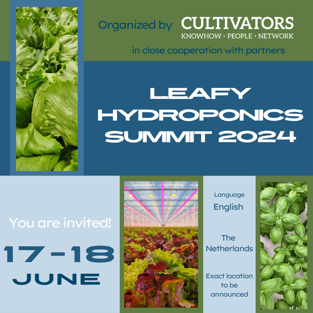 Cultivators' leafy greens event will take place on June 17 and 18, the Monday and Tuesday after the Greentech. The event includes a seminar and various company visits, addressing issues for a successful facility in detail. "New trends, developments, innovations, and outstanding issues," says Tim.