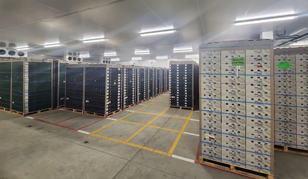 Lac du Soleil's holding room where pallets are stored at 0°C until loaded out to containers or cold trucks (for steri markets like China)
