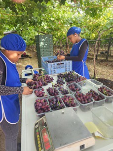 Everything is weighed and packed in the vineyards, saving on packhouse construction, but in future they plan to erect a small packhouse specifically for mixed punnets (on which one can get a R40 to R50 (2.4 euro) premium, he observes) and for double XL and premium packaging. The rest of the crop will continue to be packed in the vineyard.