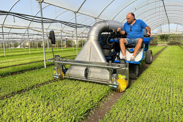 "One of our other highlights is the Eco-Clean, which is a self-propelled trimming machine for the removal of grass residues. It has been designed with the aim of minimizing both the impact on the workplace and the operating costs. The compactness of the machine is one of its most important features, i.e., it is less than 1.70 meters in height from the ground, and it can also be used in multi-span greenhouses and polytunnel greenhouses."