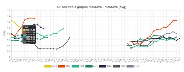 Nonetheless, the prices are still rather good as compared to earlier years when grapes sold at this time of the year for around US $0.65 on average. Therefore, most likely farmers of Moldova will soon release the last available volumes to close this rather good season.